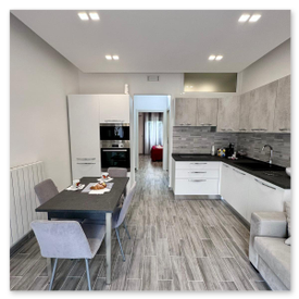 Un bilocale (da 4 posti letto) di nuova ristrutturazione composto da cucina/salotto, camera da letto e bagno. Dotato di zona lavanderia, tv in cucina e camera da letto, forno, lavastoviglie, macchina caffè, aria condizionata e caldaia.